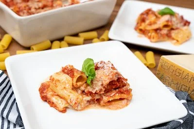 This is a thick, rich sauce that requires a thick pasta that can stand up to it's strength, Rigatoni, fusilli, tagliatelle, and ziti are great choices. This sauce is also layered in baked pasta dishes, such as the one in the picture, and classic Bolognese-style lasagne.